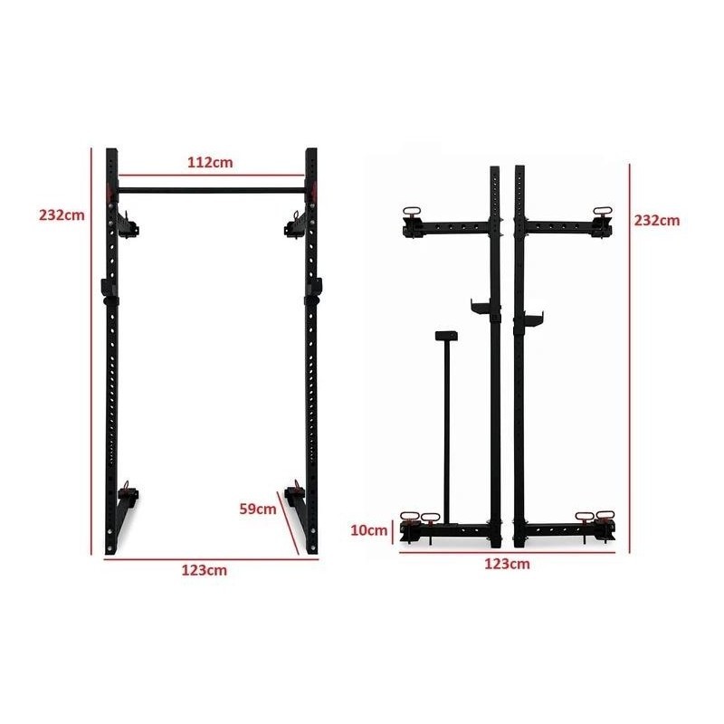 Cette cage à squat pliable est un des outils de travail les plus pratiques sur le marché. Exécutez vos squats, dips et tractions puis repliez la en quelques secondes contre votre mur. Cette cage vous permet d'optimiser votre espace au sol et de pouvoir équiper votre zone d'entraînement sans l'encombrer. Les pieds sont fixés grâce à 4 ancrages dans le mur pour vous apporter une grande stabilité et solidité.